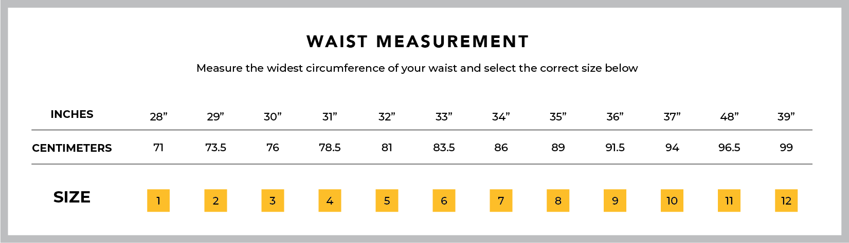 Toàn bộ size unisex với 12 kích cỡ giúp bạn chọn được chiếc đai vừa vặn nhất.